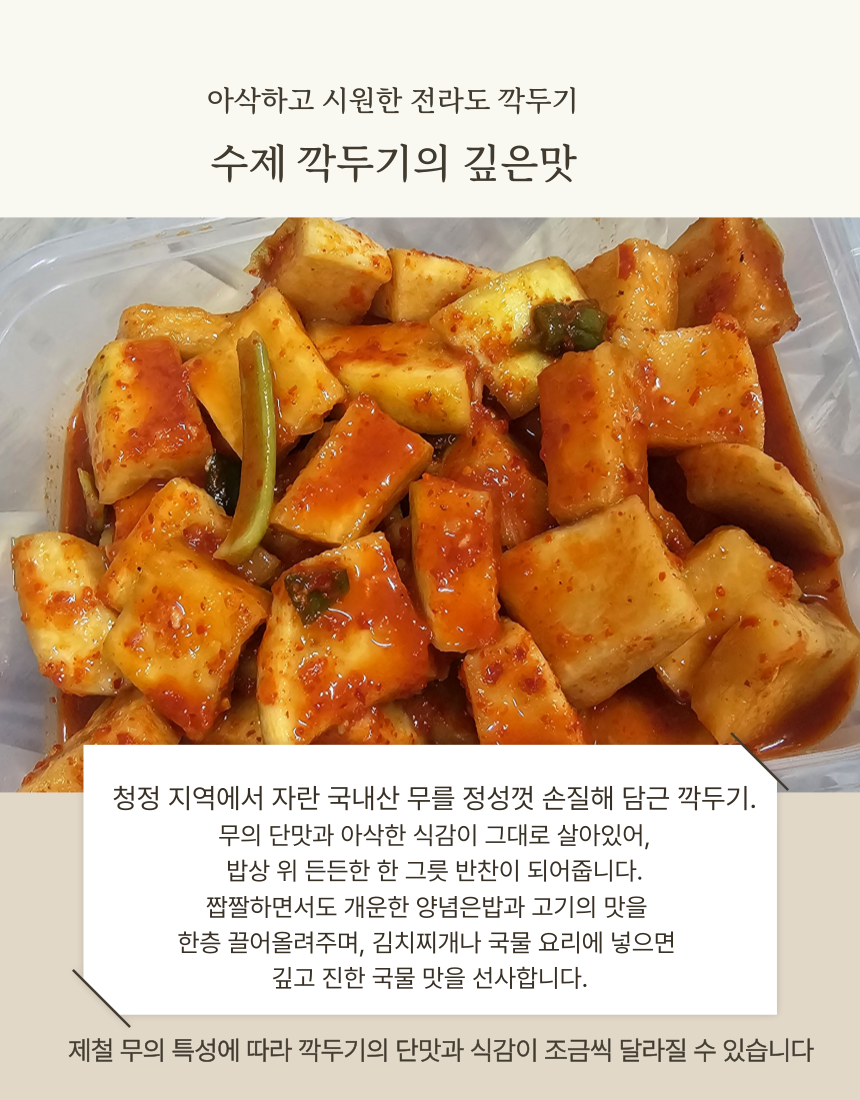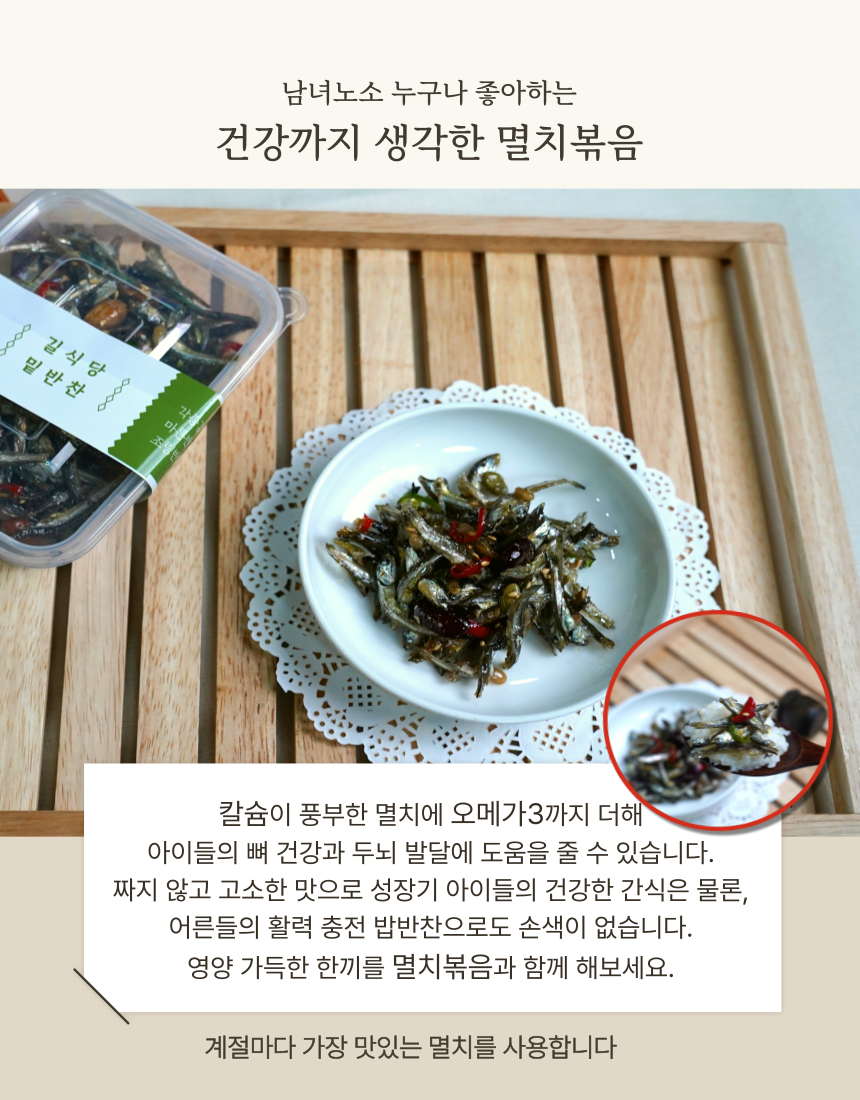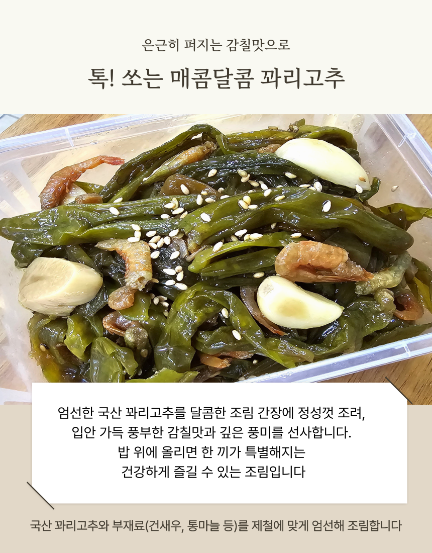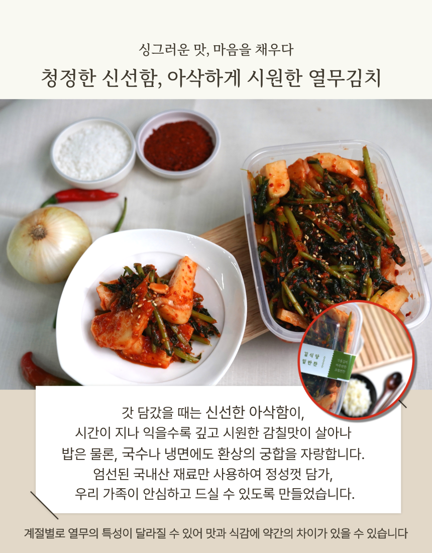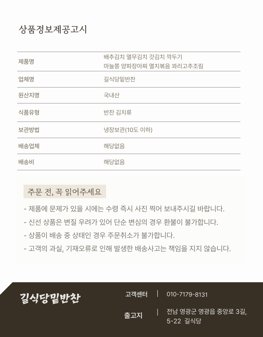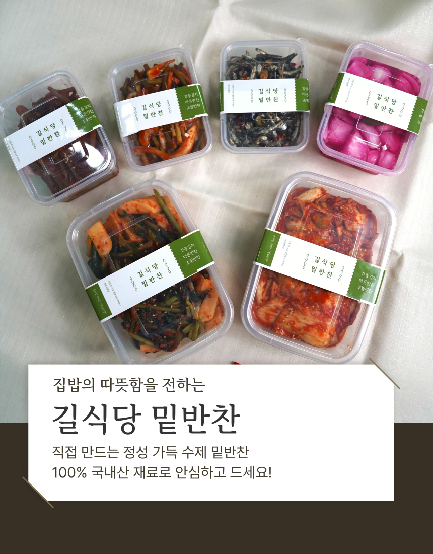 [길식당밑반찬] 배추겉절이,열무김치,깍두기,마늘쫑무침,양파장아찌,꽈리고추조림,멸치볶음 - 장날닷컴, 전남스마트전통시장