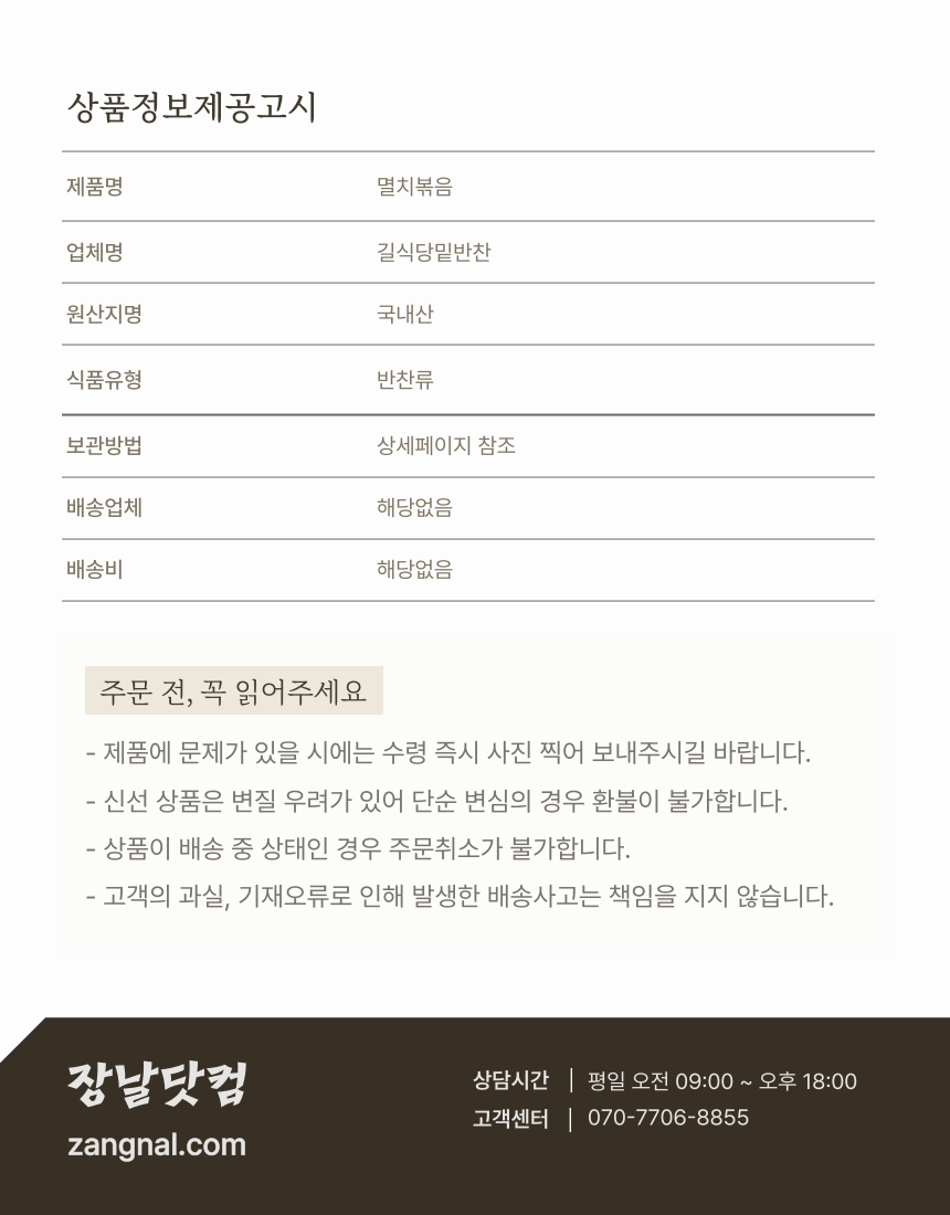 [길식당] 견과류 멸치볶음 250g - 장날닷컴, 전남스마트전통시장