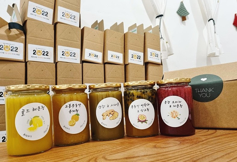 [꽃피우다] 오미자&자몽 500ml 수제 건강청 선물포장 (1구) - 장날닷컴, 전남스마트전통시장