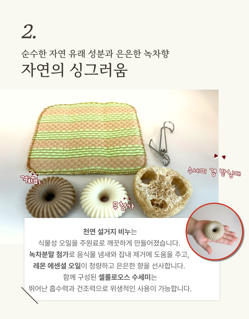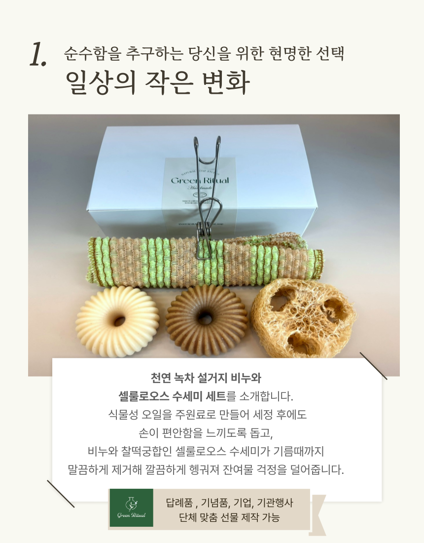 비건 설거지 녹차비누 2구 천연수세미 세트 (비누2구+집게+수세미받침대+친환경옥수수망사수세 - 장날닷컴, 전남스마트전통시장