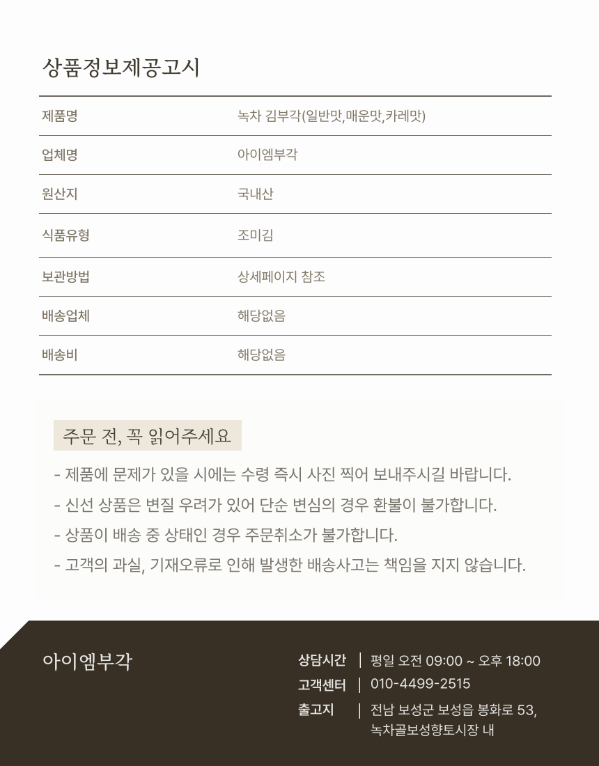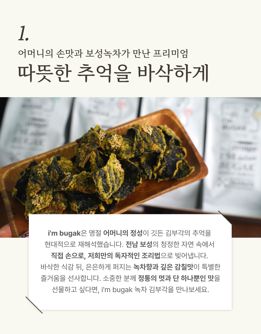 아이엠부각 보성녹차 수제 찹쌀 김부각 70g 아이들 반찬 간식 맥주안주