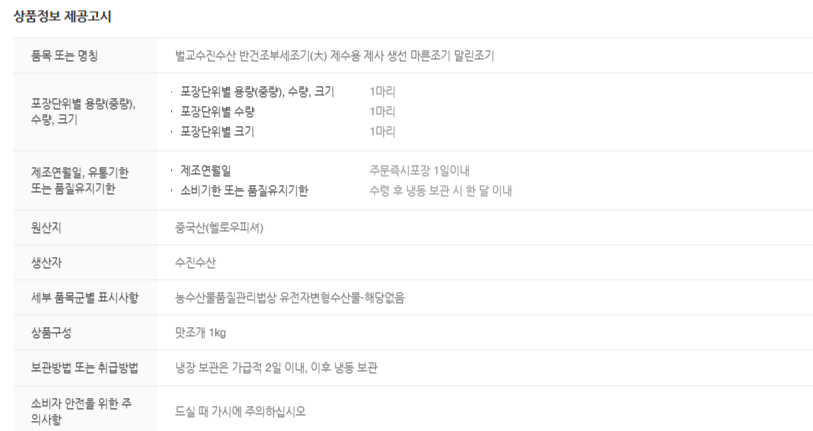 벌교수진수산 반건조부세조기(大,小) 제수용 제사 생선 마른조기 말린조기 - 장날닷컴, 전남스마트전통시장