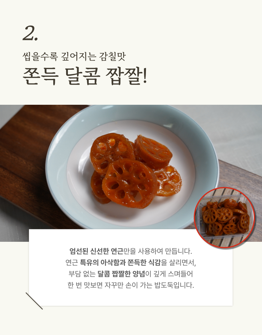 쫀득하고 담백한 연근조림 500g x 2팩 - 장날닷컴, 전남스마트전통시장