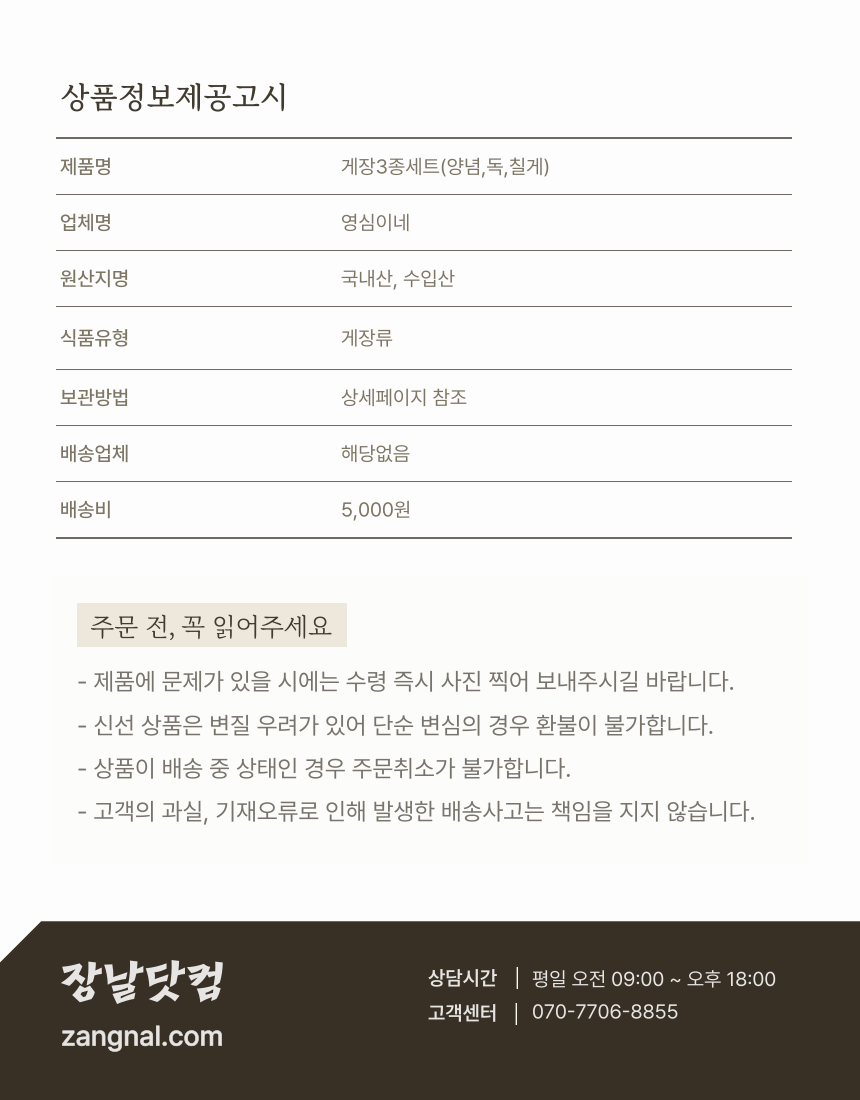 게장 3종세트(양념게장 700g +,독게장 700g + ,칠게장 700g) - 장날닷컴, 전남스마트전통시장