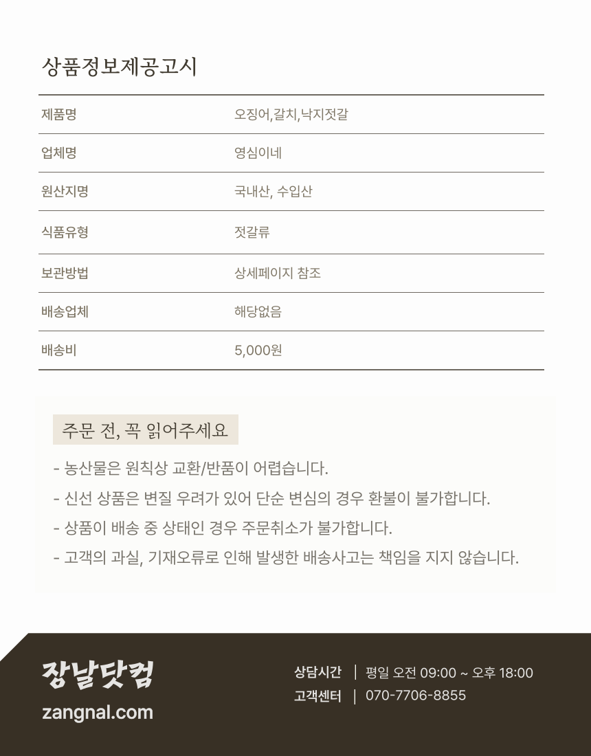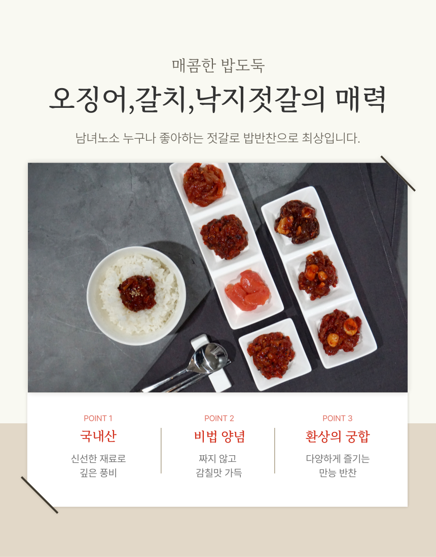 밥도둑 젓갈 3종 세트 (오징어젓갈 400g + 갈치젓갈 400g + 낙지젓갈 400g) - 장날닷컴, 전남스마트전통시장