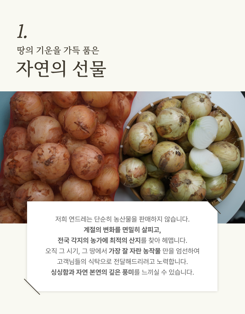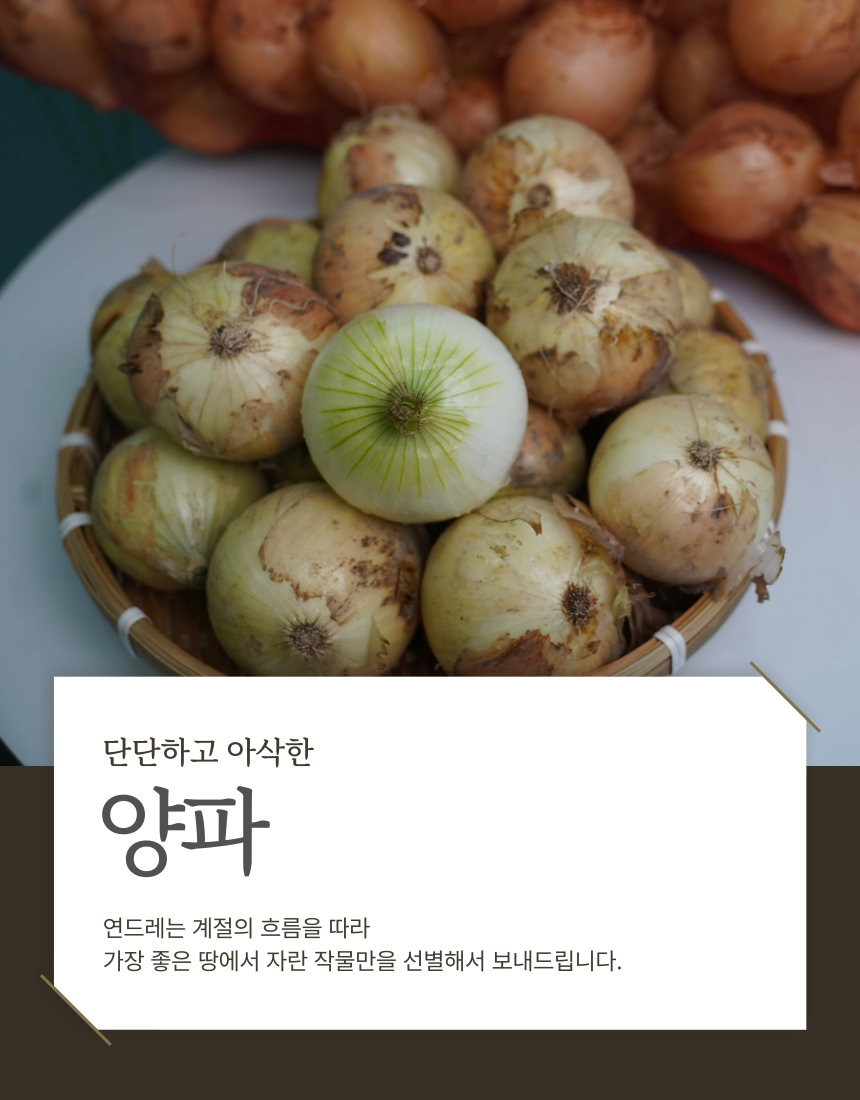 연드레는 계절의 흐름을 따라 가장 좋은 땅에서 자란 작물만을 선별하여 보내드립니다 (0)