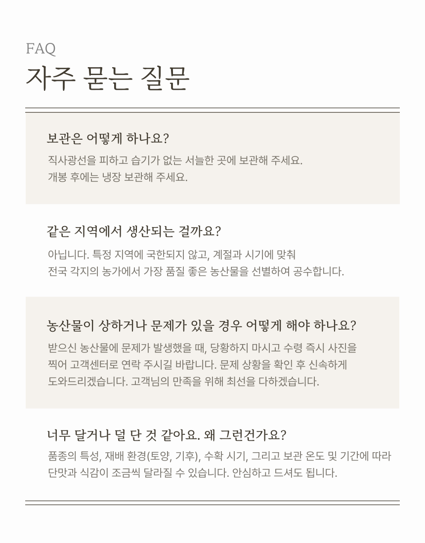 품질보증 기준에 관하여, 전자상거래 법 등에서의 소비자 보호에 관한 법률로 규정되어 있는 소비자 청약 처리 가능 범위에 해당하는 경우에 한하여 반품/ 교환 신청을 처리해 드리고 있습니다. 상품 하자 시 판매자와 필히 연락하셔야 하며 임의로 반품할 시엔 왕복 택배비가 고객님께 부과됨을 알려드립니다. 교환 및 반품은 판매자와 통화 후 수령일로부터 7일 이내에 발송해 주셔야 합니다.