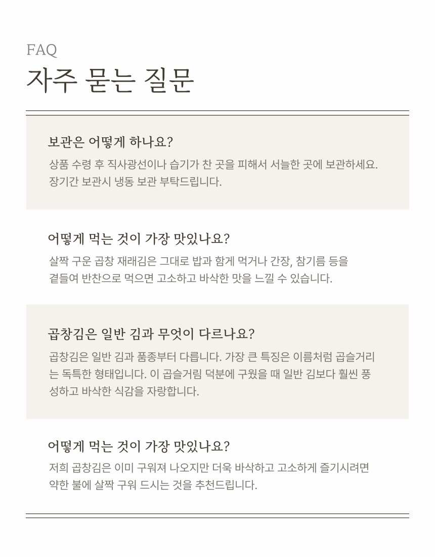 첨가물무첨가 무안 도리포 곱창 돌김 100장 - 장날닷컴, 전남스마트전통시장