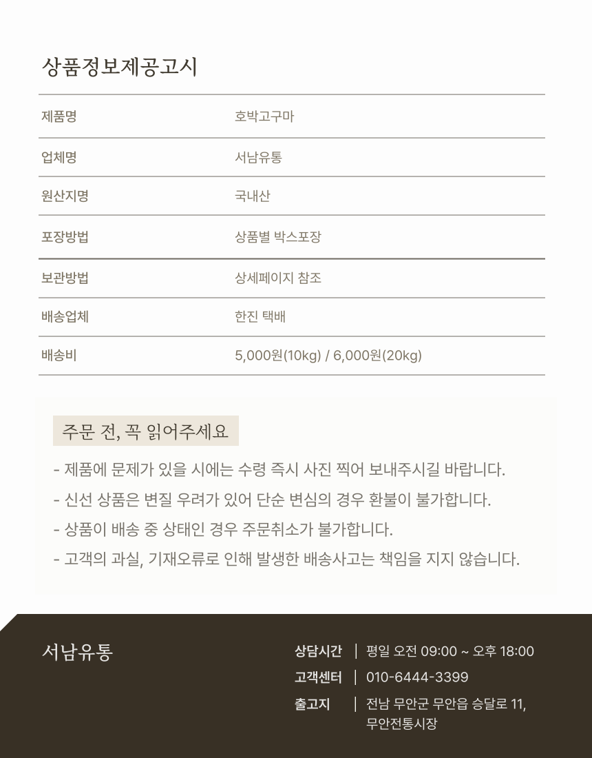 서남유통 자연이 준 디저트, 햇 호박고구마 10kg