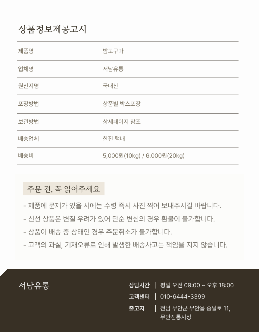 서남유통 포슬+고소+담백 햇 밤고구마 10kg