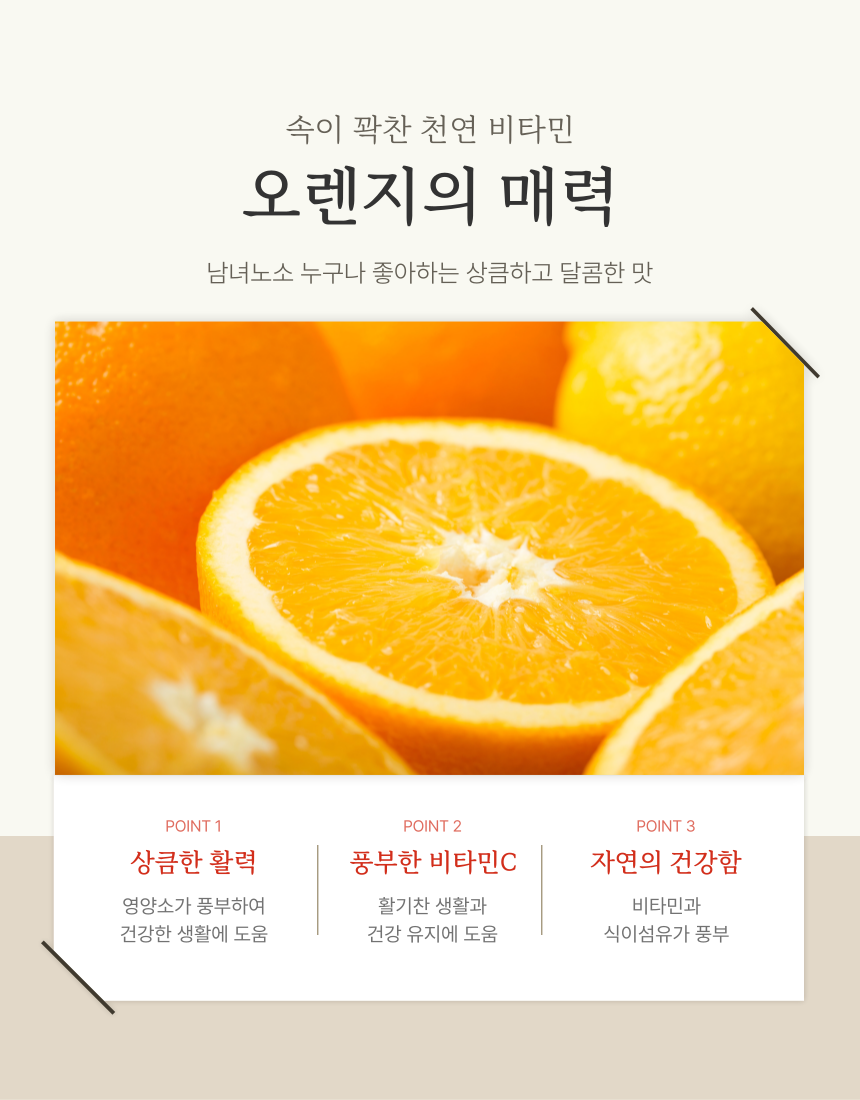 전국팔도의 신선한 농산물을 취급합니다. 달콤하고 즙 많은 수입 오렌지, 간편하게 비타민 충전하세요! (0)