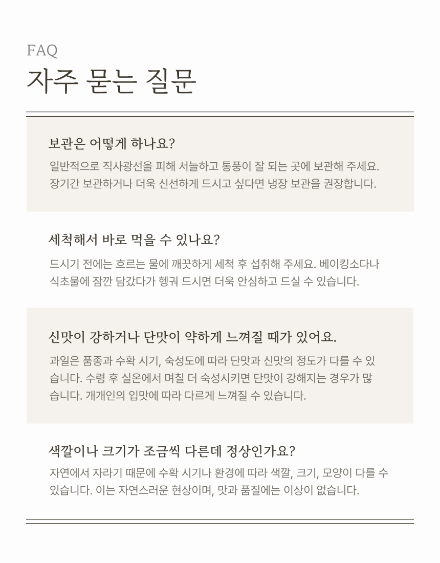 품질보증 기준에 관하여, 전자상거래 법 등에서의 소비자 보호에 관한 법률로 규정되어 있는 소비자 청약 처리 가능 범위에 해당하는 경우에 한하여 반품/ 교환 신청을 처리해 드리고 있습니다. 상품 하자 시 판매자와 필히 연락하셔야 하며 임의로 반품할 시엔 왕복 택배비가 고객님께 부과됨을 알려드립니다. 교환 및 반품은 판매자와 통화 후 수령일로부터 7일 이내에 발송해 주셔야 합니다.